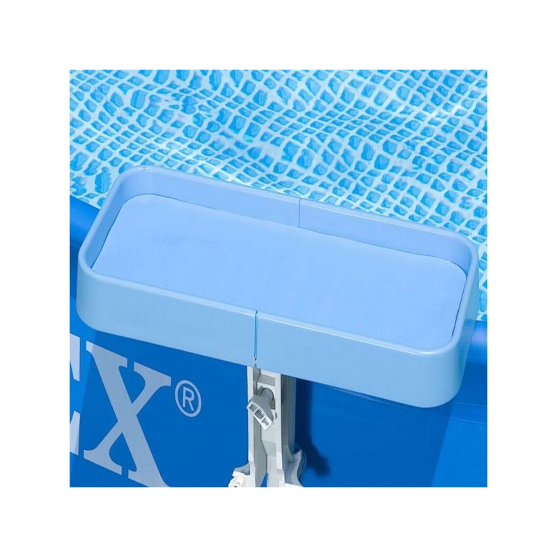 جنس این محصول از پلاستیک با کیفیت بوده و دارای یک صفحه مستطیلی است، این سینی یک قسمت برای نگهداری وسایل دارد و از زیر دوپایه پلاستیکی که به بدنه آسیبی نمیرسانند دارد، براحتی سینی را میتوان روی بدنه استخر نصب کرد و قابل انتقال بهر سمت از استخر اینتکس میباشد. به ديواره استخر متصل مي شود نگهدارنده بطري،فنجان،دارو و موبايل و ...